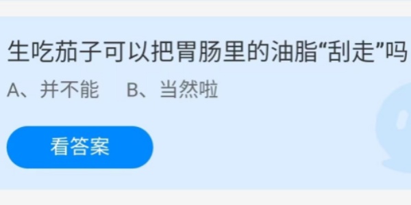 蚂蚁庄园:生吃茄子可以把胃肠里的油脂刮走吗 2024-08-08 09:34:49