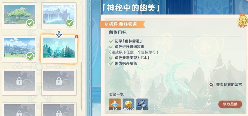原神4.8画外旅照第四关神秘中的幽美要怎么很多玩家都不了解,其实只要玩家去到枫丹幽林雾道的位置,然后找出冰系枫丹角色,在普攻的时候拍摄下照片即可,下面就和小编一起来看看原神4.8画外旅照第三关神秘中的幽美任务图文攻略的介绍吧。