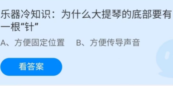 支付宝蚂蚁庄园小课6月22日的其中一个问题是: 为什么大提琴的底部要有一根“针”?这道题考查的是关于大提琴底部针的作用方面的知识,下面大家快来一起看一下蚂蚁庄园6月22日的正确答案吧。