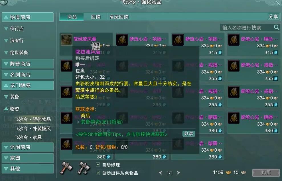 很多玩家想知道剑网3无界驼绒流风囊怎么获得,打开大侠之路,随便挑两个完成,接着领取隐元秘宝风云令,使用1个获得10个飞沙令,具体内容一起来看看这篇剑网3无界32格背包驼绒流风囊获得方法介绍,希望能够给你带来帮助。