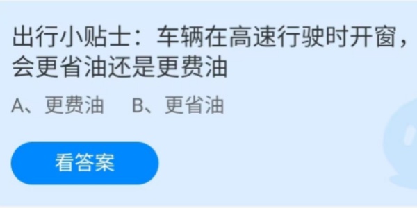 蚂蚁庄园:车辆在高速行驶时开窗会更省油还是更费油 2024-08-26 09:58:07