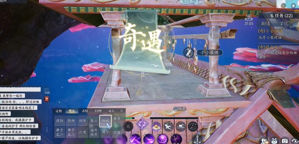 诛仙2这款游戏中的奇遇是很多的,有些小伙伴好奇小小琴师奇遇怎么做,其实我们只需要来到水下的(14884.9876)位置,然后使用动作-呐喊即可完成奇遇了,下面就为大家带来详细的小小琴师奇遇图文攻略。