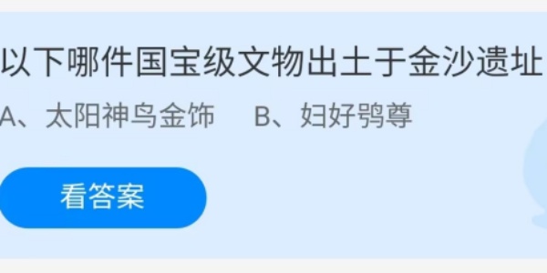 蚂蚁庄园:以下哪件国宝级文物出土于金沙遗址 2024-08-22 09:33:46