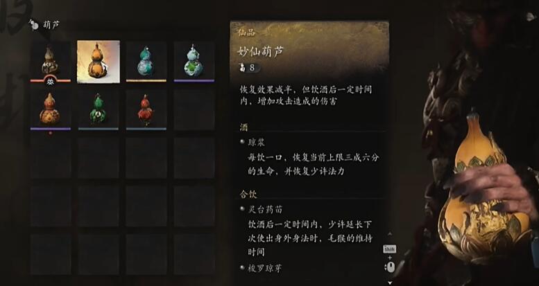 很多玩家想知道黑神话悟空妙仙葫芦怎么获得,获得佛手左和佛手右,传送到如意画轴村口,需要一万多的灵和两个佛手制作。妙仙葫芦效果是饮酒后增加攻击,但恢复减半。具体内容一起来看看这篇黑神话悟空妙仙葫芦获得方法介绍。
